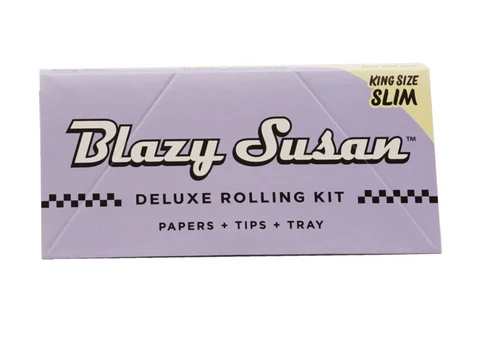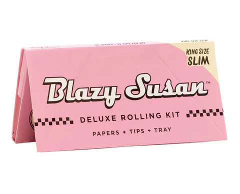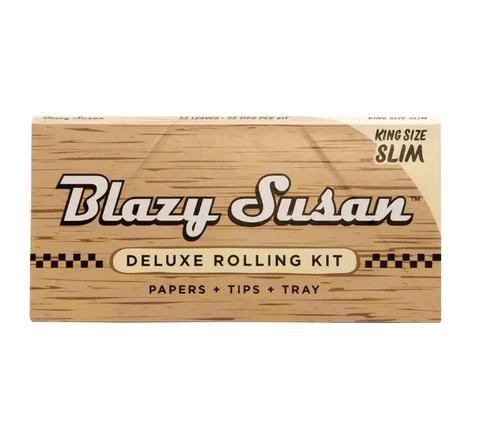 El Deluxe Rolling Kit de Blazy Susan es una solución todo en uno para fumadores que buscan comodidad y estética. Incluye 32 papeles King Size, 32 filtros perforados y una mini bandeja integrada, ideal para enrollar en cualquier lugar sin necesidad de una superficie plana.