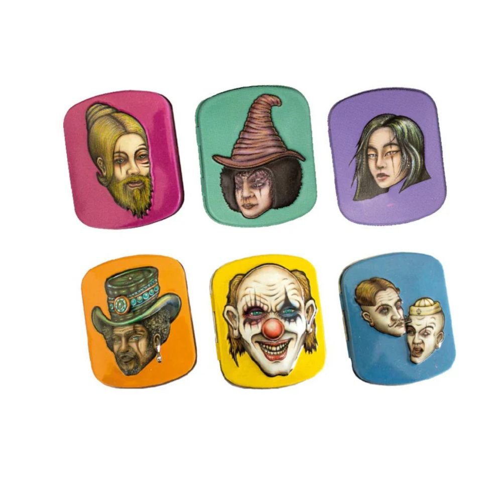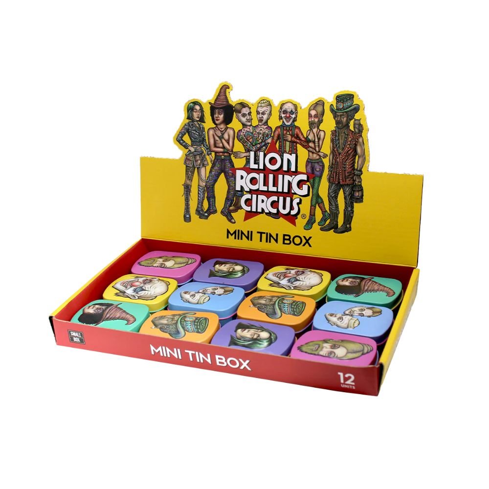 Las Mini Tin Box de Lion Rolling Circus son esas pequeñas joyas que mezclan funcionalidad con locura visual. Hechas para proteger lo esencial — desde filtros, flores o papelillos — tienen el tamaño justo para acompañarte a todas partes. Y lo mejor… cada caja muestra a un personaje del circo más trippy del mundo, como si tus accesorios herbales fueran parte de una función delirante. 🤹♀️🌿
